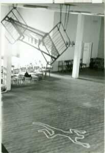 Tai po vienu pavadinimu sutalpintos trys instaliacijos, tiesiogiai sietinos su tarp sritiniu bendradarbiavimu. Projektas įgyvendintas 1996 kartu su Gedimino technikos universiteto studentų atstovybe. 1994 metais kai iš pirmų metų nepavyko įstoti į VDA, pasirinkau VGTU, transporto ekonomikos studijas. Tiesa po pirmo pusmečio išsilaikius visus egzaminus, kad neiškristi iš bendrabučio, paskaitų daugiau nebelankiau, nes intensyviai ruošiausi pakartotinam stojimui į VDA. Iš principo būdamas iškritęs iš VGTU įstojau į VDA. Metai pragyventi „Bistyčios” bendrabutyje Antakalnyje ir pažintys su techninių specialybių studentais, po metų atsiradusios naujos dailės akademijos pažintis produktyviai apsijungė šiose trijose instaliacijose. instaliacijos buvo realizuotos renginio metu VGTU tuo metu priklausiusiose patalpose Basanavičiaus gatvėje. Trys instaliacijos buvo sumontuotos trijose lokacijose. Tai yra diskotekos salėje ir universiteto koridoriuje bei viešuosiuose tualetuose. Diskotekos salėje kabojo metalinė lova ir kontūras primenantis apibrėžtą lavoną iš filmų ar kriminalistų pasaulio. Antra instaliacija tai koridoriuje pastatytos trikampės kopėčios ant jų apverstas automobilio vairas o prie to vairo pririštas celofaninis maišelis, kuriame plaukioja gyvas karpis. Fone nutapytas stovinčios nuogos moters paveikslas. Trečioji instaliacija tai vyrų ir moterų aktai iškabinti moterų ir vyrų tualetuose, kurie buvo gauti iš dailės akademijos studentų po peržiūrų. Didžioji dalis jų tiesiog būdavo išmetami, o mes su VGTU studentais po renginio sugalvojome juos parduoti per aukcioną. Kelios dešimtys piešinių už simbolinę kainą buvo parduoti ir po to dar kurį laiką kabojo technikos universiteto bendrabučio kambariuose. Tokiu būdu instaliacijos iškritęs tai spontaniškas įvykio fiksavimas, kuris simbolizuoją gaivališką eklektiškai išsitaškiusį ir smagų studentišką virsmą. Fotografijų autorius jei gerai atsimenu Darius Vaičekauskas.
