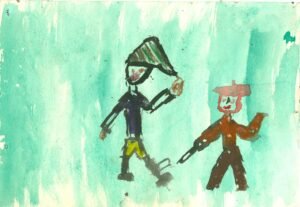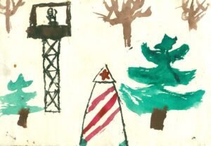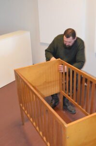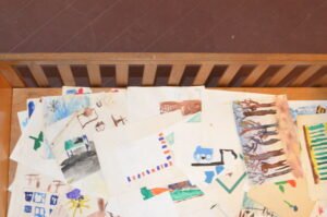 2018 METAIS SUKURTA DARŽELIO PIEŠINIŲ INSTALIACIJA, ORIGINALIOJE J.LAIVIO VAIKIŠKOJE LOVELĖJE KURIĄ PADARĖ JO TĖTIS J. LAIVYS.