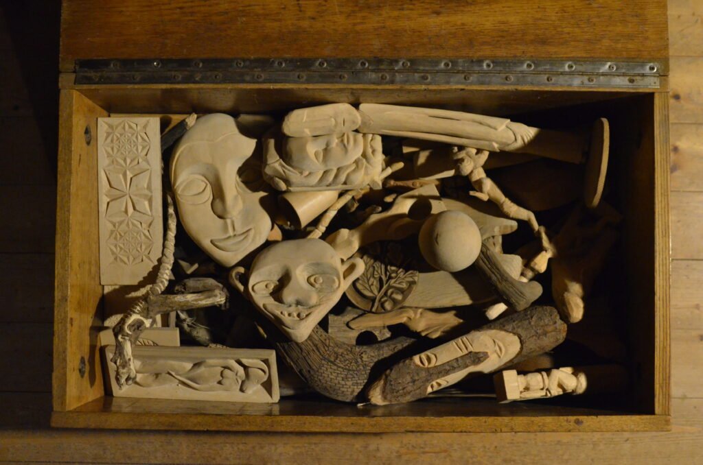 Aprašant faktines šio rinkinio savybes, būtina pažymėti jog dauguma darbų išdrožta iš liepos medžio. Medžiai buvo pjaunami miške o ne mieste. Konkretus išdrožtų kūrinių skaičius nėra žinomas. Dalis jų padovanota ar tiesiog išnyko laiko tėkmėje. Kai kurie darbeliai turi konkrečius pavadinimus. Daugelyje iš jų dominuoja žmogaus pavidalas. Pagal sukūrimo laiką ankstesniuose jaučiamas vaikiškas gyvumas, o vėlesniuose pastebimos nepasvertos ambicijos stoti į Vilniaus dailės akademijos skulptūros katedrą. Iš autoriaus pasakojimų žinome jog 1994 metais su šiais kūriniais drožėjas į VDA nebuvo priimtas.
